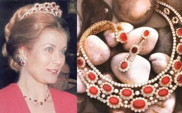 从好莱坞影星到王妃,格蕾丝王妃的故事成了口口相传的美丽童话,她有着让无数女人羡慕的财富、荣誉和爱情,当然还有价值连城的珠宝。这顶红宝石王冠是由一条项链改装而成的,配上红宝石耳环,尊贵大气又妩媚。